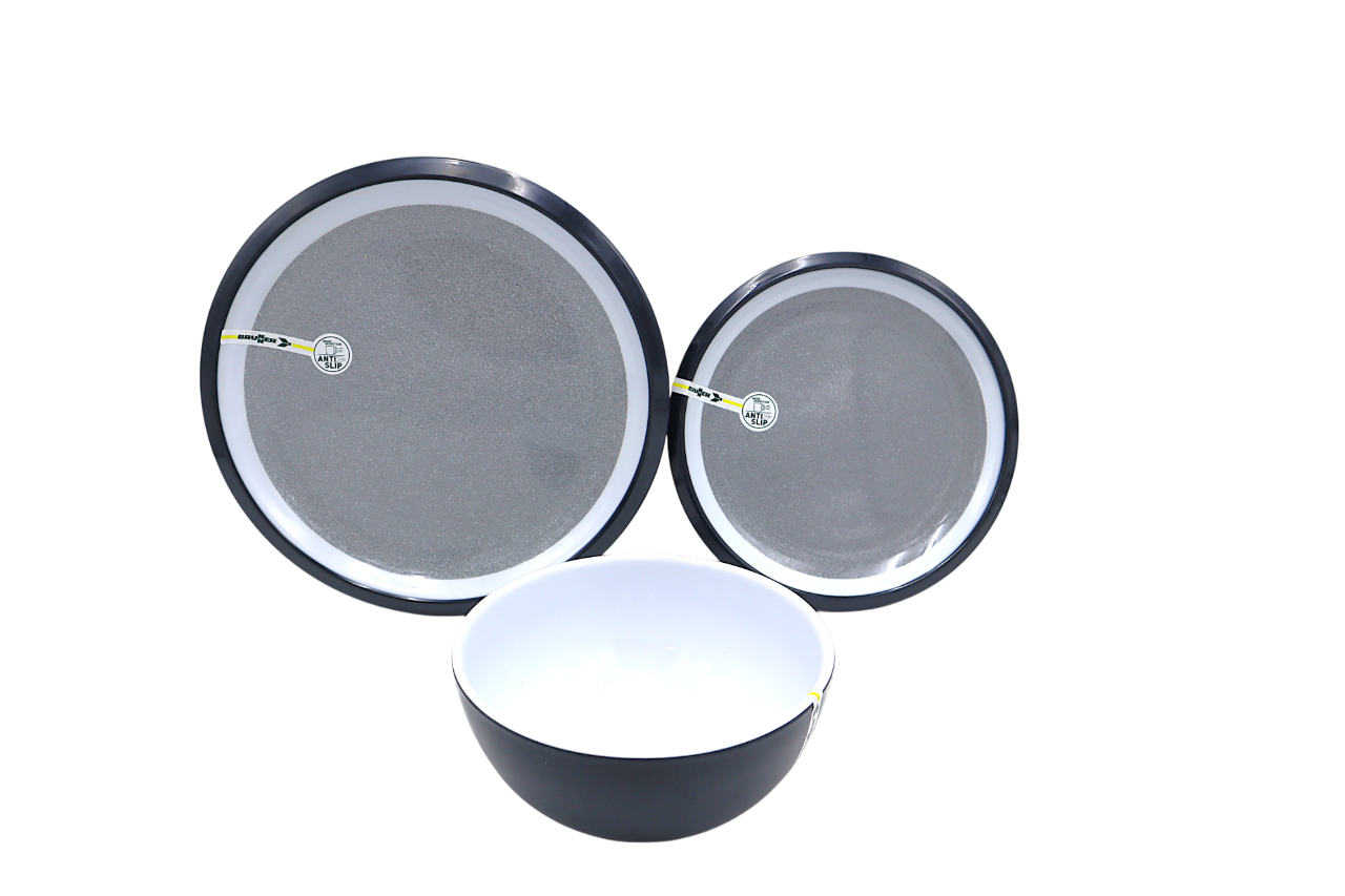 Klassisch 12-teiliges designtes Geschirrset – ideal für Freizeitfahrzeuge dank integriertem Anti-Slip-Ring, der sicheren Halt gewährleistet.
