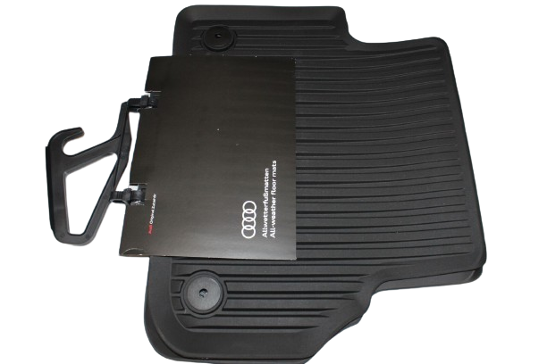 Die Allwetterfußmatten sind optimal auf die Bodenmaße Ihres A4 angepasst und recyclebar. Mit A4 Schriftzug in schwarz auf den vorderen Matten. Durch die rutschhemmenden Noppen an der Rückenseite und die Befestigung an den dafür vorgesehenen Punkten im Bodenbereich sind sie mit dem Fahrzeugboden verbunden.