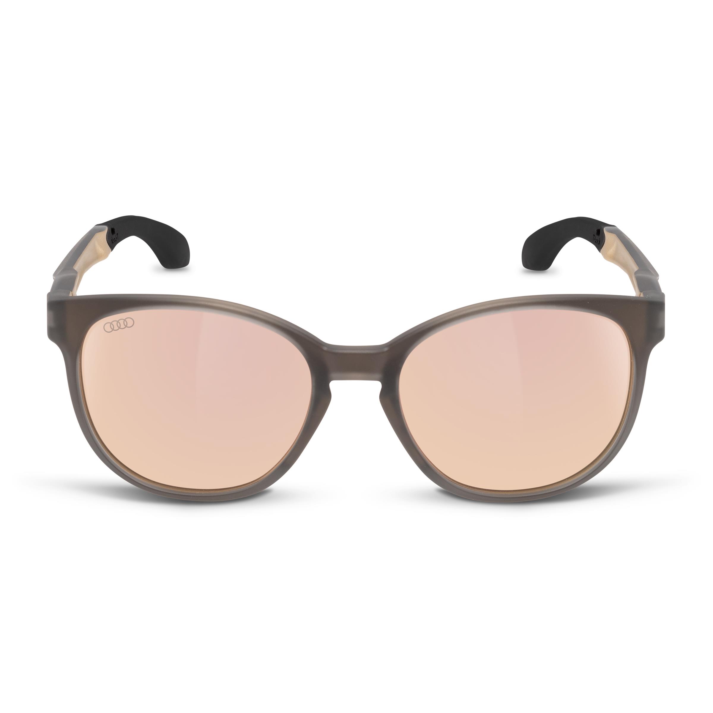 Eine Verbindung von zeitlosem Design und Funktion: Die Audi Sonnenbrille aus biologisch abbaubarem Material in matt braun ist der ideale Begleiter für Sport und Freizeit.