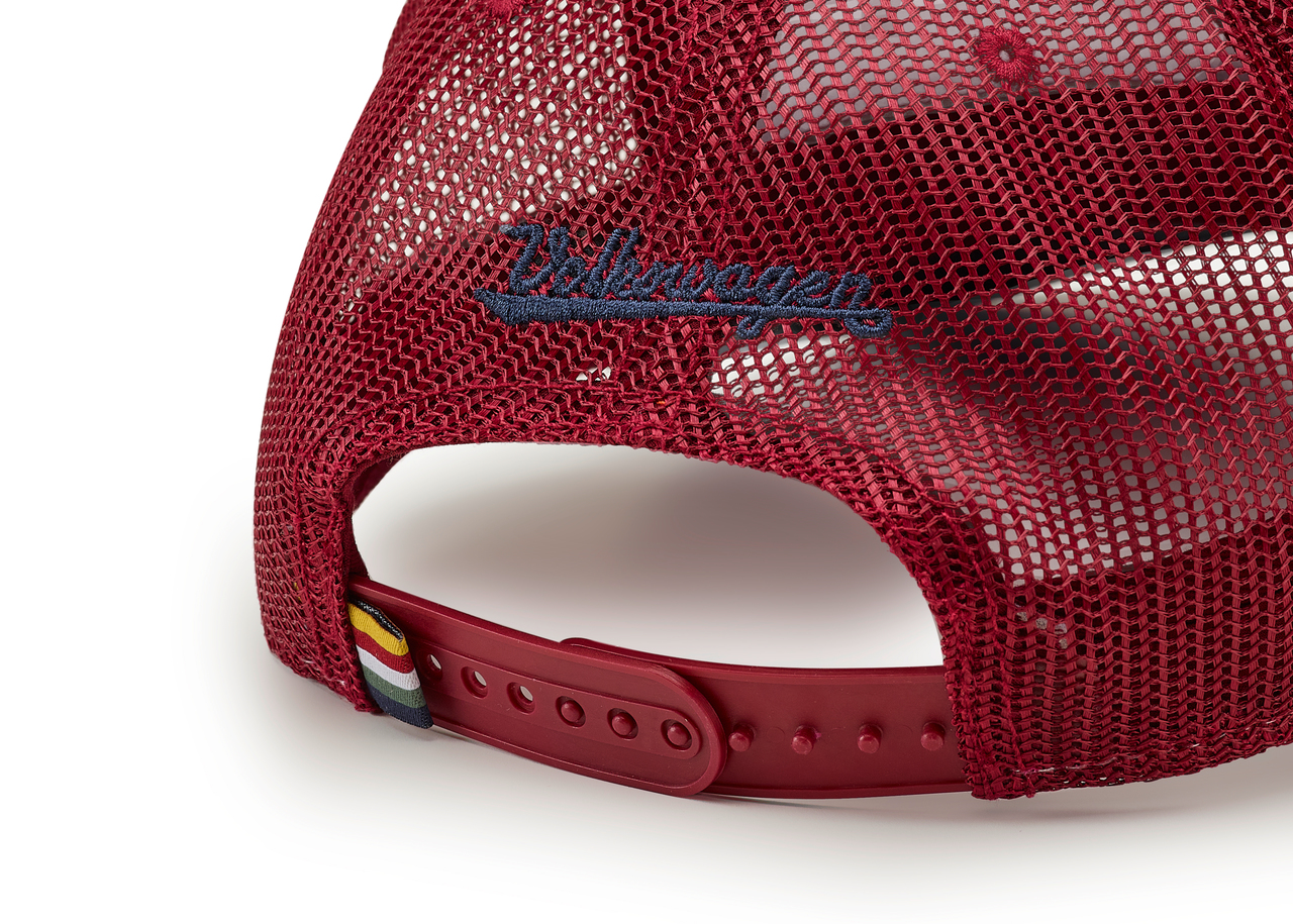 - hintere Panel aus bordeauxfarbenem Mesh mit dunkelblauer Volkswagen Stickerei