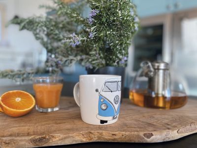 Die coolen großen Tassen in verschiedenen Farben gibt es in unterschiedlichen Motiven. Die Kollektion, angefangen bei dem „THE ULTIMATE RIDE“ und „BULLI DRIVER“ Schriftzug bis hin zum Design des T1 Bulli (Front- und Rückansicht) lässt hier keine Wünsche mehr offen. Die hochwertige Verarbeitung, die Form und das trendige Motiv jeder einzelnen Tasse hinterlassen überall einen schönen Eindruck. Sie eignen sich als Dankeschön, Geschenk, Campinggeschirr oder beim Picknick im Freien. Als Tee oder Kaffeetasse, für Cocktails, Suppen und Müsli stehen sie als Kochgeschirr beim Campen ebenfalls jederzeit zur Verfügung. Das tolle Accessoire bringt das Flair der 60er-Jahre in Ihr Leben!